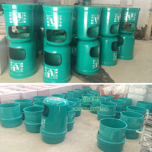 這次采購的A12玻璃鋼果皮箱型號,我們的標準按照客戶的要求來定制生產。A12玻璃鋼果皮箱規格為:550*900*2mm.兩款桶的顏色為紫藍,翠綠。按照雙方約定的標準,事先做的樣品,發給對方參考確認,再進行做批量生產。垃圾桶頭口貼膠條,表面光滑,無裂痕,紋邊角加層。采用玻璃鋼不飽和聚酯樹脂和玻璃鋼纖維復合而成的材質,玻璃鋼垃圾桶邊角的厚度4mm,單邊帶有煙缸。桶中間加絲印,愛護環境,人人有責,垃圾桶不落地,長安更美麗等標語。其他的垃圾桶,翠綠色加有可回收垃圾桶字樣。長安街道辦A12玻璃鋼果皮箱,簡潔、美觀,色澤鮮艷,經久耐用,對人體無害,不褪色油漆不脫落。