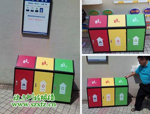 深圳市公安分局這款F98鋼板三分類垃圾桶的規(guī)格為:1220*430*890mm,鋼制垃圾桶呈屋形,三分類有三種顏色。從左到右順序依次排列,分別紅色,紅色,綠色三種顏色組成。屋形投遞口,絲印投遞人物標(biāo)志,輕輕一推即可,把垃圾廢物放進(jìn)去。正面絲印有三種標(biāo)志,有毒廢棄物,不可回收,可回收三類。鋼制垃圾桶一種存放垃圾的容器,使用冷軋鋼板或者鍍鋅鋼板制作而成。因?yàn)楫a(chǎn)品表面經(jīng)過噴塑和酸處理,防腐蝕性能更高。采用酸處理+噴塑處理,更利于防銹,增加使用壽命。這是鋼制垃圾桶所具有的強(qiáng)大的優(yōu)勢。