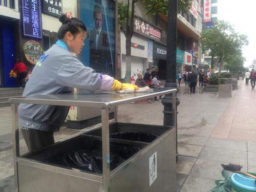 江漢路步行街地區(qū)管理辦公室相關(guān)負(fù)責(zé)人介紹,去年底,中山大道改造工程封路施工,江漢路每天往來(lái)人流量較以往增長(zhǎng)兩到三倍。與此同時(shí),封路后日均垃圾量激增至6噸,較以往增長(zhǎng)3倍。該負(fù)責(zé)人解釋?zhuān)捎谏弦慌は淙萘刻。瑹o(wú)法滿(mǎn)足需求,因此從去年開(kāi)始,就在逐步設(shè)計(jì)新果皮箱的樣式大小。