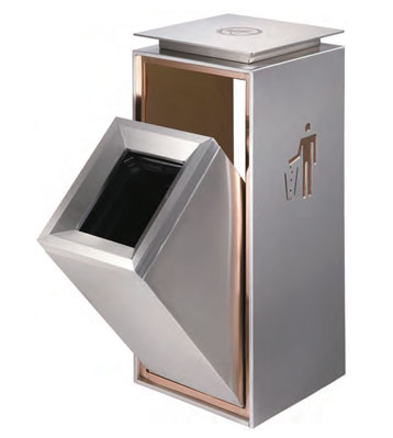 深圳新標準城中村街道社區不銹鋼五分類垃圾桶由有害垃圾、玻璃、金塑紙(為金屬、塑料、紙張的簡稱)、廚余垃圾、其他垃圾這5分類不銹鋼垃圾桶組合而成。其中金塑紙、其他垃圾日常產生量較大,所以分類收集容器也