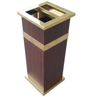 欣方圳為深圳嶺南天潤物業(yè)公司提供了一批室內(nèi)垃圾桶,材質(zhì)有鈦金類和鐵板噴塑類,外觀精美,使用價值高。 D272皇家座地?zé)熁彝耙?guī)格:300*300*685,D295垃圾桶的規(guī)格為310*310*740,采用不銹鋼經(jīng)鍍鈦處理,專業(yè)除