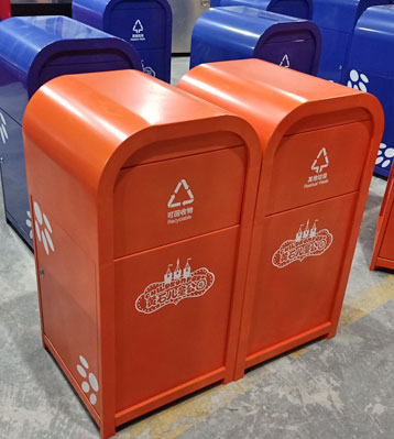欣方圳游樂園景區鋼制烤漆垃圾桶廠家生產圖