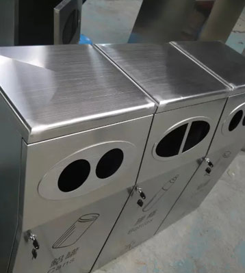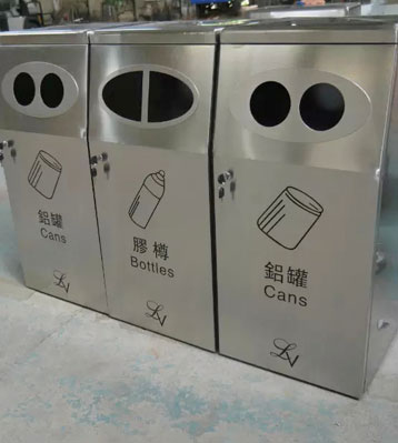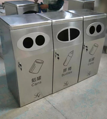• 使用范圍:不銹鋼三分類環保回收桶表面光滑、亮麗,是電梯口、寫字樓、學校、物業、賓館、酒店、機場、汽車站等擺放的首選。