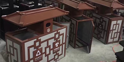 中國風戶外鋼制分類垃圾桶工廠批量生產圖