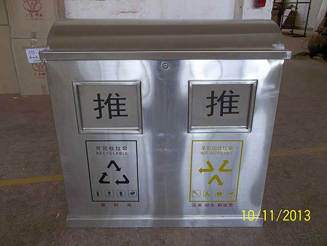 欣方圳不銹鋼分類垃圾桶絲印