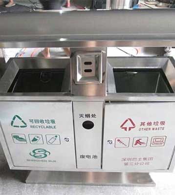 • 使用范圍:欣方圳分類環保不銹鋼垃圾桶表面光滑、亮麗,是電梯口、寫字樓、學校、物業、賓館、酒店、機場、汽車站等擺放的首選。