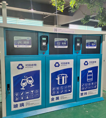 深圳校園智能分類垃圾箱由有害垃圾、玻璃、金屬、塑料、紙張、其他垃圾、廚余垃圾組成。兩側(cè)設(shè)有滿載感應(yīng)器,當(dāng)回收箱滿載時(shí),相應(yīng)警示燈亮起,投放口...
