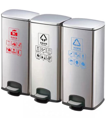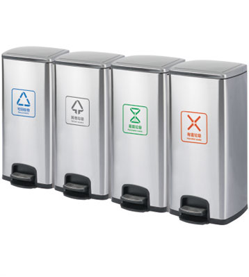 欣方圳120L室內不銹鋼腳踏四分類垃圾桶批量生產圖