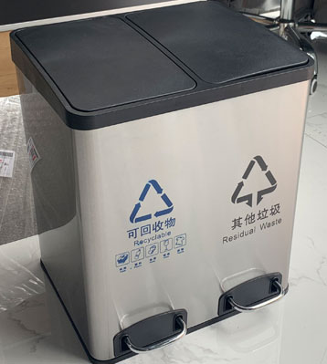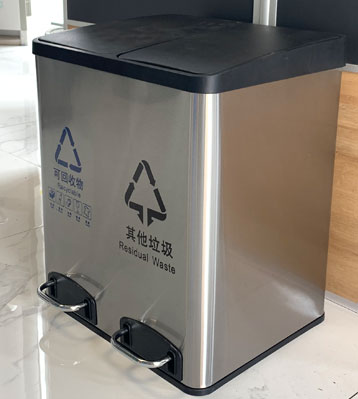 • 產品名稱:30L小區酒店腳踏不銹鋼室內分類垃圾桶