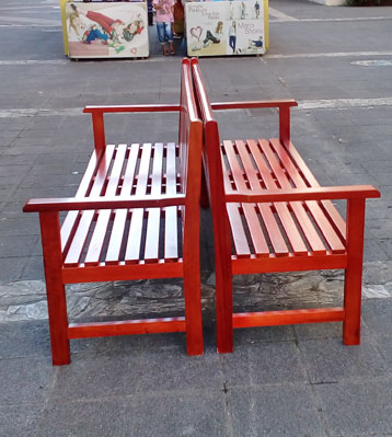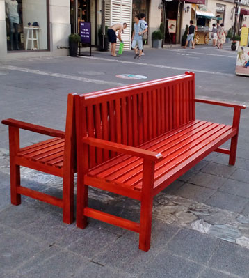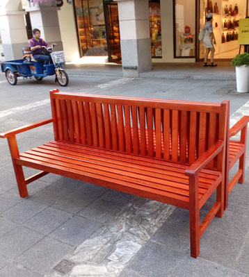 • 產品材質:商業街實木扶手靠背休閑椅采用全實木材質制作,椅條由客戶定制可選進口實木(防腐木.紅胡桃.山樟木等)、還可選擇鋼結構、玻璃鋼、鐵藝、塑木等。