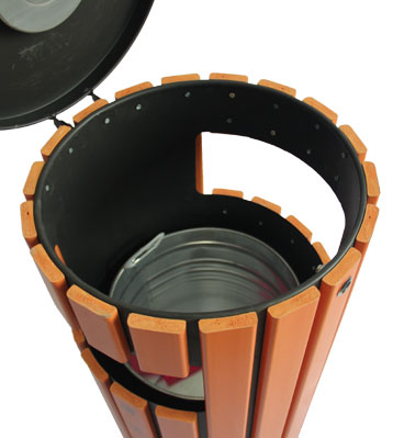 仿木烤漆鋼木單桶垃圾桶頂蓋細節圖