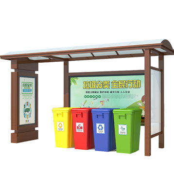 設(shè)有擋雨棚,可配備垃圾箱信息顯示屏、防水照明燈、廣告屏,進(jìn)行地面硬化。對(duì)社區(qū)玻金塑紙可回收物,其他垃圾,廚余垃圾,有害垃圾等生活垃圾定時(shí)定點(diǎn)投放收集.