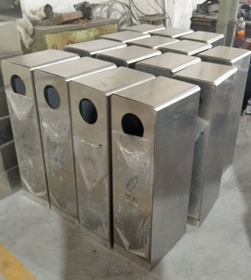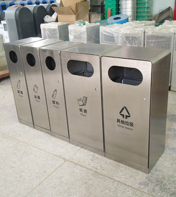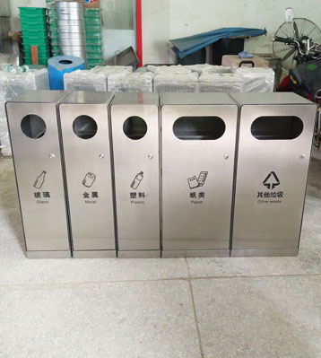 欣方圳不銹鋼戶外五分類組合垃圾箱批量生產(chǎn)圖