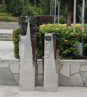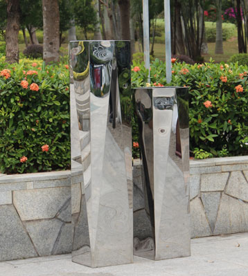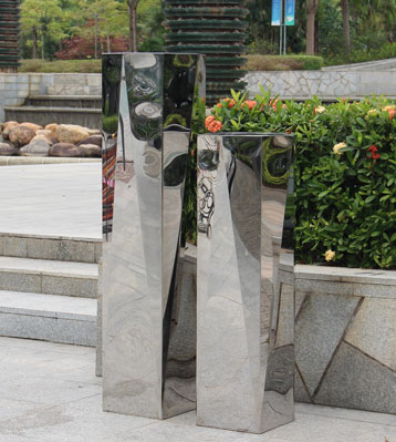 • 產品名稱:鏡面不銹鋼落地式景觀花瓶幾何切面金屬組合花器
