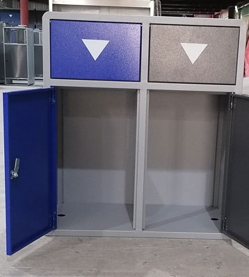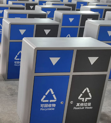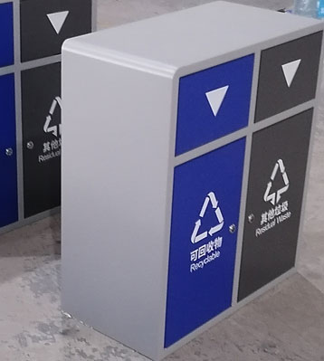戶外推蓋垃圾桶金屬烤漆密閉分類垃圾箱批量生產圖