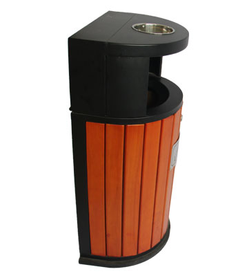 欣方圳戶外靠墻式鋼木單桶垃圾桶原材料