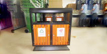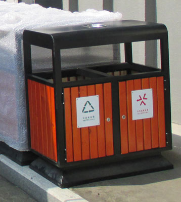 欣方圳社區戶外鋼木分類垃圾桶桶身細節圖