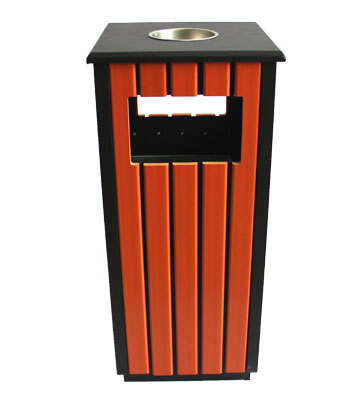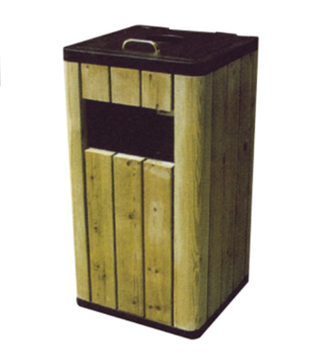 小區鋼木單桶垃圾桶戶外擺放圖: