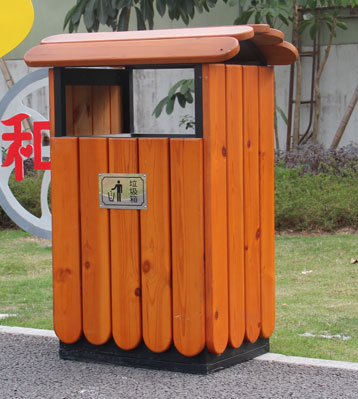 欣方圳木屋鋼木單桶垃圾桶廠家批量生產圖