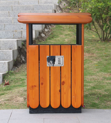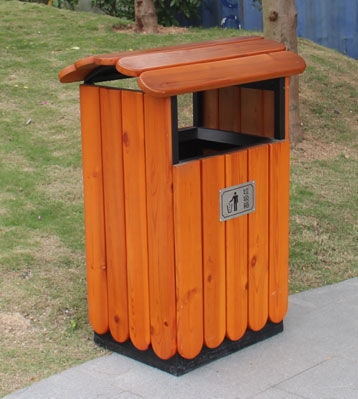 戶外鋼木單桶垃圾桶桶頂設計